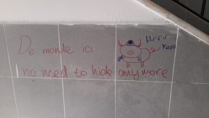 ישראלה ויקי ברוש, הבעלים של קפה ישראלה בכפר סבא הפגינו אתמול בירושלים, הבוקר מצאו מכתב שנאה מודבק בכניסה לקפה