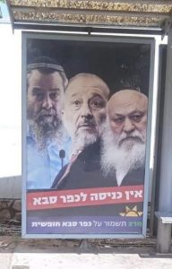קמפיין הבחירות של מרצ בכפר סבא, עם תמונותיהם של חברי הכנסת גולדקנופף, מעוז ודרעי על שלטי חוצות מעוררים סערה