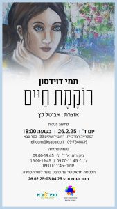 בתערוכה "רוקמת חיים", שתתקיים בספרייה העירונית בכפר סבא בסוף פברואר, יוצגו כ-20 ציורים החושפים פנים שונות של האישה. היצירות מבטאות את הבחירות האישיות שלי כיוצרת – דמויות הנשזרות בטבע, נוסטלגיה ורומנטיקה, וחיבור עמוק לרגש ולזמן.