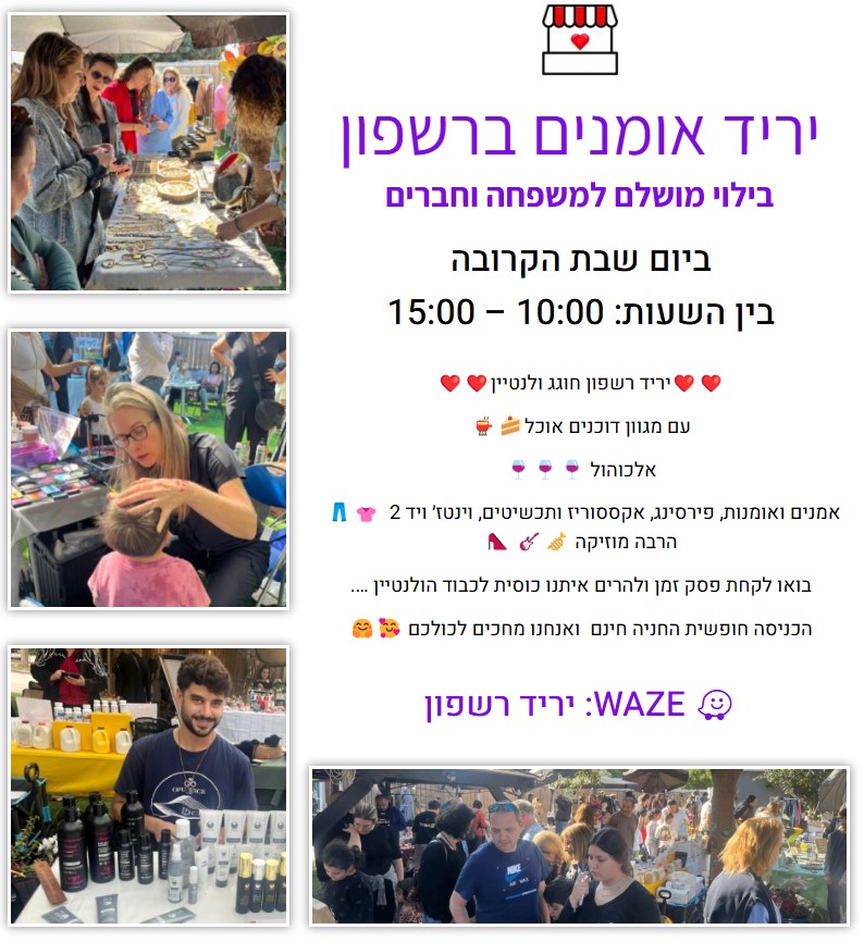 3. יריד אומנים ברשפון בשבת הקרובה 15.2.25