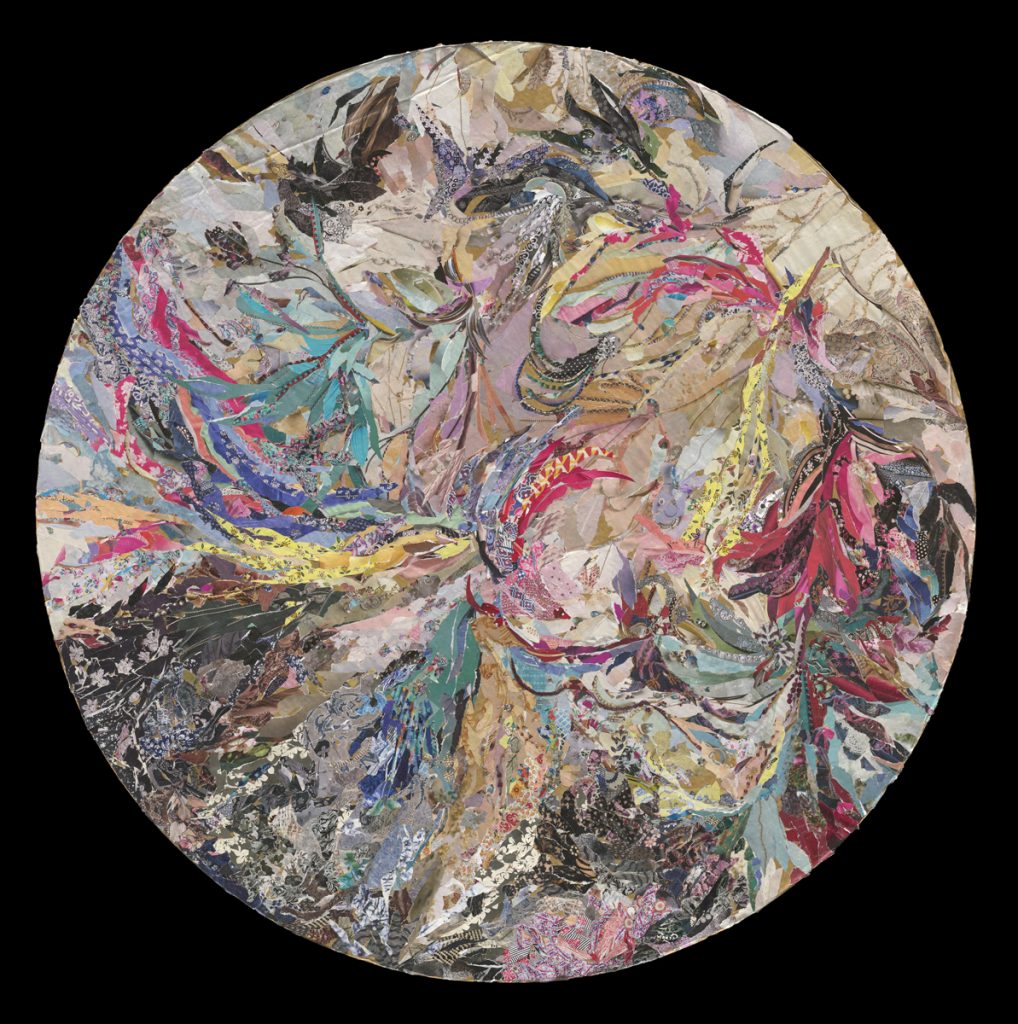 חנה בן אליעזר קרטיס עסקה מאז ומתמיד בכל סוגי האמנות, בציור על כל סוגיו ומאוחר יותר בפסיפס. "לקראת מותו של בעלי, כשהיה בבית החולים, היתה לי הארה. הבנתי שאני רוצה להחליף את אבני הפסיפס הקטנות בגזרי עיתון. אני רוצה לקחת דבר מושלם וסופי כירחון עשוי נייר כרומו מושקע, או מגזין אופנה מפתה, או מגזין טבע ולקרוע אותו ולהרכיב משהו חדש מושלם לא פחות". המסר בעבודות הקולאז' המרהיבות שלפנינו הוא בתהליך העבודה. אין כאן ביקורת חברתית, אין כאן מחאה, ואין כאן יצירת יש מאין. המהות של היצירה היא בתהליך עצמו. הבחירה, הגזירה וההדבקה. החומרים המשמשים ליצירה הם בעלי רקע קודם מובהק, בעלי מטען רעיוני ברור, ומהם נוצר משהו חדש. ביצירת הקולאז' מתקיים תהליך הדומה במהותו לראיה הפילוסופית של אמנות הקינצוגי היפנית. (קין = זהב. צוגי=חיבור) כלומר- חיבור עם זהב או חיבור מוזהב. זו אמנות המרפאה כלי חרס ושרואה בשבר ובתיקונו הזדמנות ליצירת שלם הבנוי מקרעים שאינו נופל בערכו מהשלם המקורי. על פי חכמי הזן היפני יש לאסוף בזהירות את שברי הכלי, להרכיבם מחדש, ובסוף התהליך להדגיש את קווי השבר עם אבקת זהב עשירה המעניקה לשבר יופי ועוצמה המדגישים את ערכם החיוני של השברים והקרעים. לדברי חנה " זוהי מטאפורה לחיים שלי".