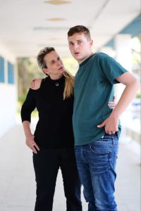 מיכאל בנה, שמסיים כעת את לימודיו בבית ספר לחינוך מיוחד. הוא מחונן מוזיקלית, עם שמיעה אבסולוטית – וזה גם המסלול שמתוכנן לו בעתיד. "האתגר הוא לא של היומיום", היא מדגישה, "האתגר הוא להכין אותו ליום שבו אנחנו, ההורים, לא נהיה כאן. ללמד אותו כישורי חיים, עצמאות, הבנה כלכלית – לבנות עבורו מסלול מותאם שצומח ומשתנה איתו".