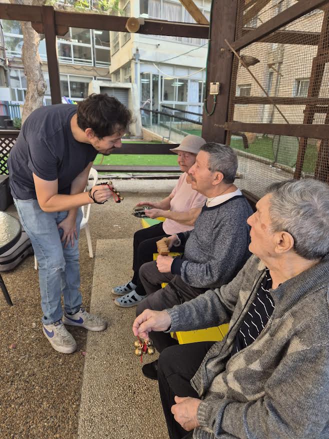 לדבריו, "אני מנחה ארבע קבוצות טיפול לניצולי שואה בעמל בשרון. הקבוצות מותאמות לאופי ולצרכים הייחודיים של המשתתפים וכוללות האזנה למוזיקה מגוונת בשלל שפות וז'אנרים, נגינה, שירה משותפת ותנועה. המוזיקה מעוררת זיכרונות, שיח ורגשות ואני משתדל להעניק לכל משתתף הקשבה מלאה ונוכחות", הוא מספר.