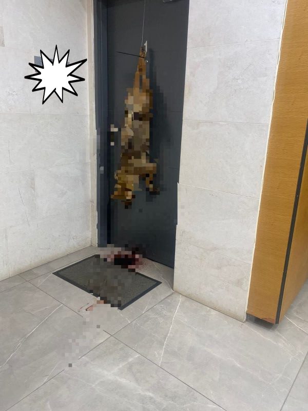 בנוסף, מחומר הראיות עלה כי תחילה שלח החשוד הודעת טקסט מאיימת אל הקורבן, ובהמשך הגיע לדירתו כשברשותו פגר של תן הקשור ברגליו באמצעותו אזיקונים והניח אותו בפתח ביתו.
