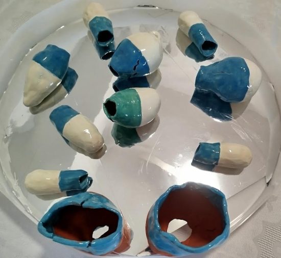 תהליך עבודה איטי, שבו נוצר מקום בתוך החומר עצמו, הוליד יצורים בראשיתיים. ספוגי ים porifera = נושאי חורים, יצחק לוריא בתורת הצמצום מסביר שאלוהים צמצם את מקומו כדי לפנות מקום לעולם. כך מתהווה קיום בראשיתי, פגיע וראשוני, הנושא עמו את עקבות ראשית החיים