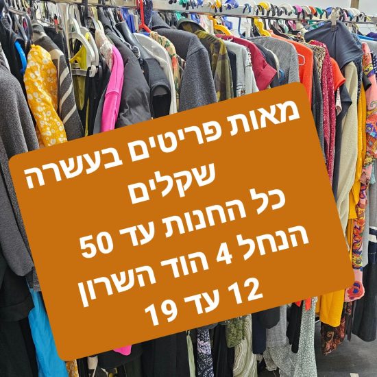 מאות פריטים כמו בגדי מותגים, חולצות, ז'קטים, שמלות, ג'ינסים ועוד בעשרה שקלים בלבד 10! 10! 10!