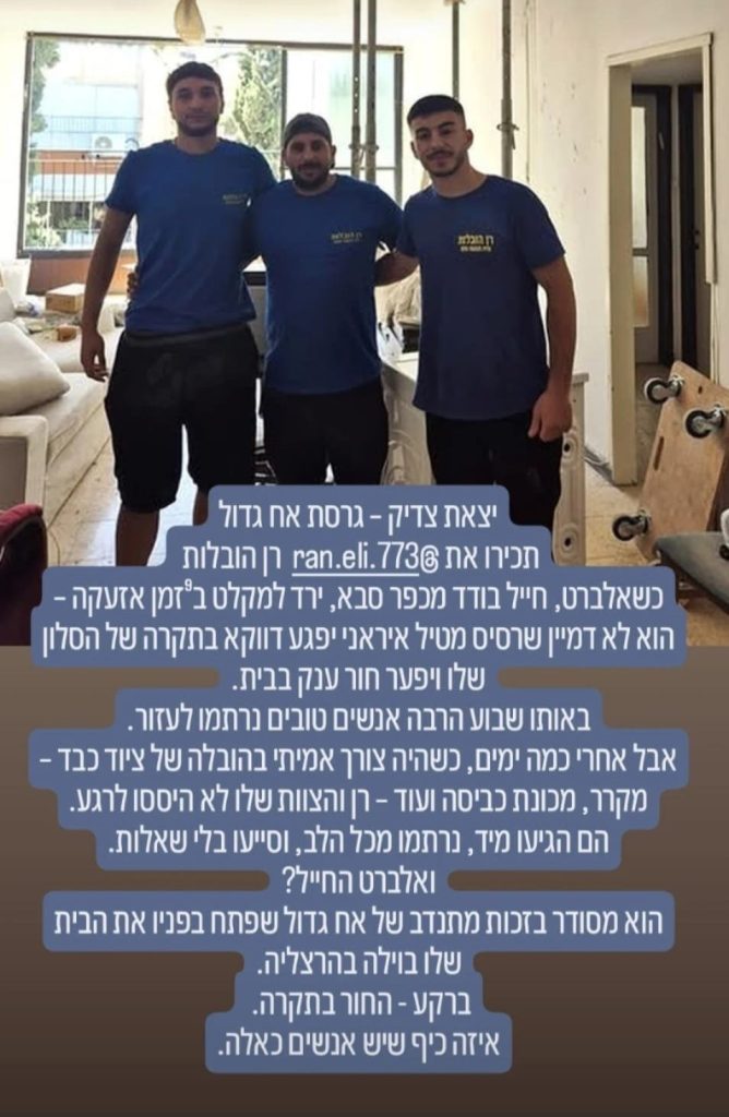 המונים הגיעו לעזור ותרמו מכל הבא ליד ואז הגיעה בקשה לרן אלי מרן הובלות שלא היסס לרגע והגיע עם הצוות שלו להעמיס את כל הציוד שנתרם לדירה החלופית